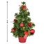 Zdobený vánoční stromeček v červeném provedení (červené kouličky, mašle, dárečky, zlatý řetízek).