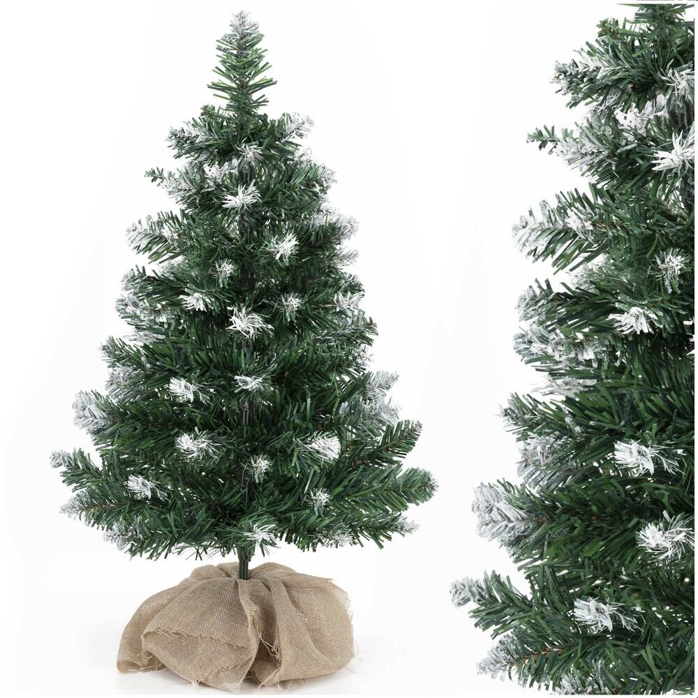 Vánoční stromeček s přirozeným vzhledem borovice zaujme jemně ojíněnými konci větviček a hustým, rovnoměrně rozloženým jehličím. Dvoubarevná fólie věrně napodobuje skutečnou větev a stabilitu zajišťuje kulatý dřevěný stojan obalený pravou jutou. Skvělá dekorace na stůl, komodu či do menších prostor. Výška 60 cm, šířka 38 cm, průměr stojanu 10 cm.