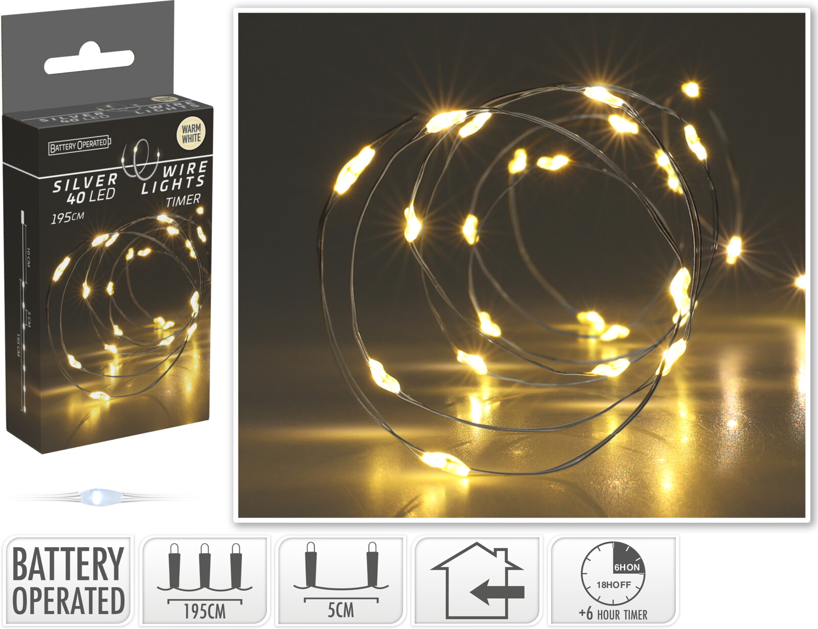 ŁAŃCUCH LED 40L CIEPŁA BIEL WEWNĘTRZNE 195CM TIMER 3xAA 1,5V NA BATERIE