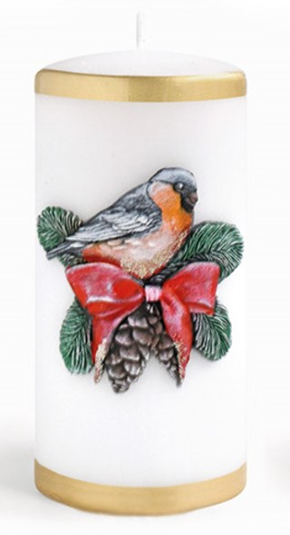 Świeca ZIMOWY PTASZEK walec mały 7x10cm parafinowa biała