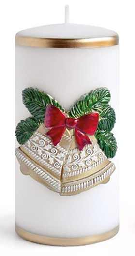 Świeca DZWONKI ŚWIĄTECZNE Walec mały 7x10cm biała