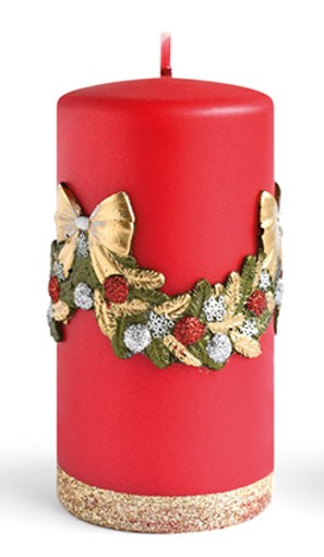 Świeca GIRLANDA Aplikacja walec mały 7xh10cm czerwona