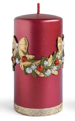Świeca GIRLANDA Aplikacja walec duży 7xh18cm bordowa parafinowa