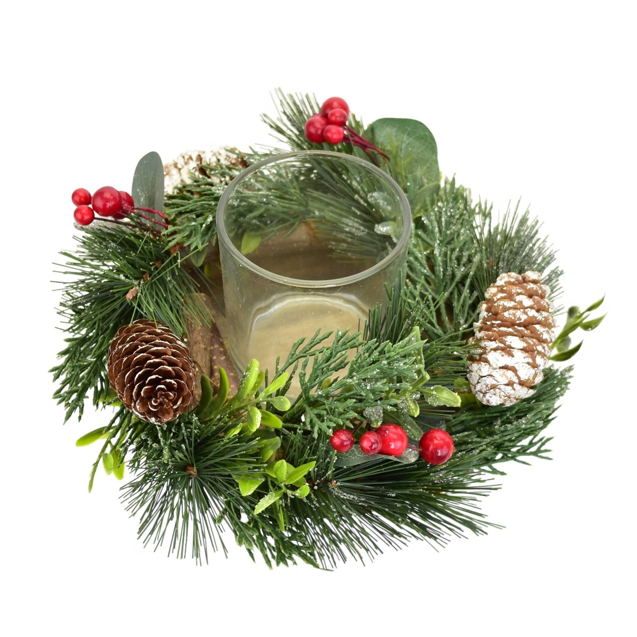 Přineste do vašeho domova nádech přírody s naším svícnem s eukalyptem. Tento elegantní svícen, zdobený umělými bezinkami, větvičkami borovice, cypřiše a eukalyptem, vytváří dokonalou harmonii mezi přírodní krásou a moderním designem. Je postaven na pevném dřevěném základu a vybaven skleničkou na svíčku, což zajišťuje bezpečné a stylové osvětlení.