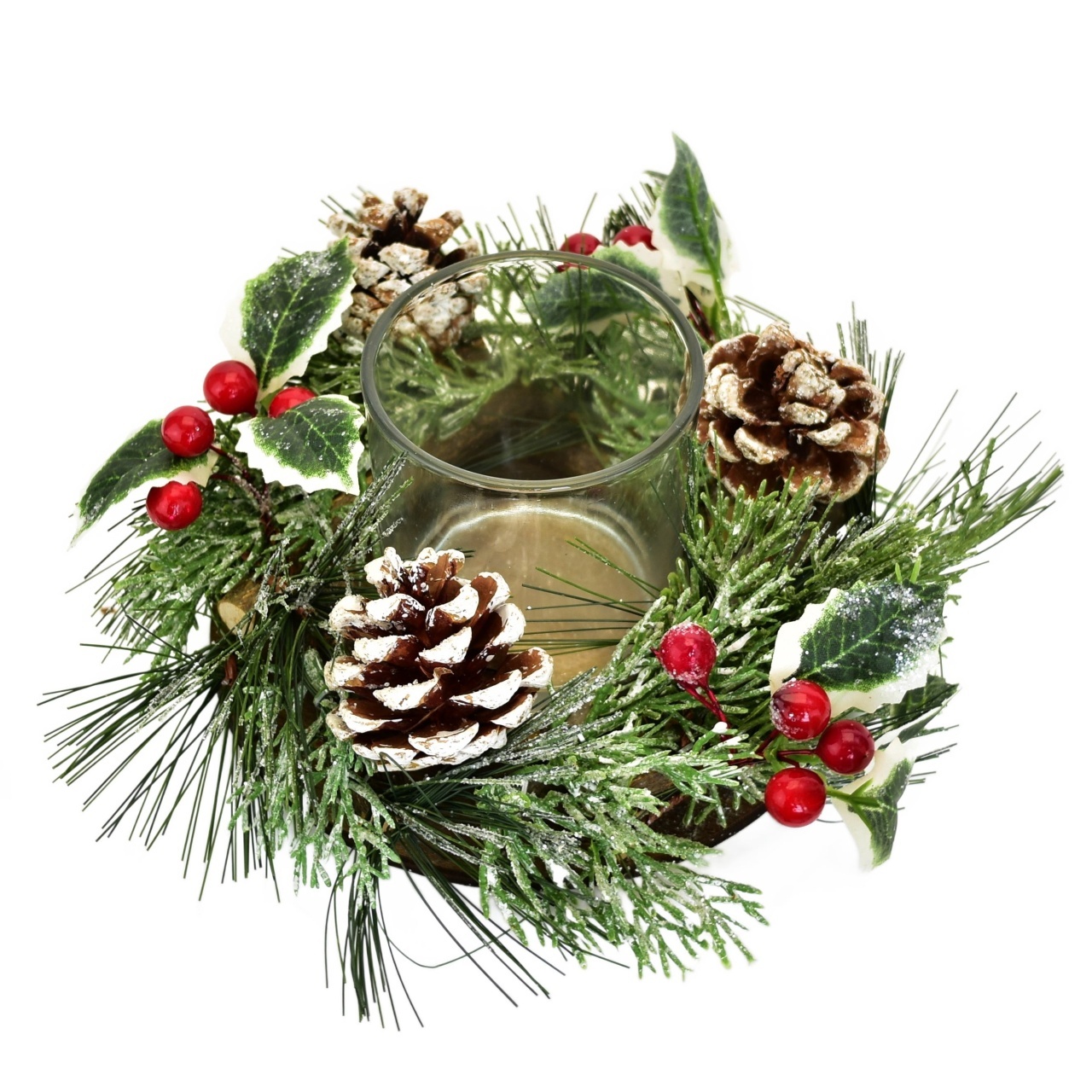 Obohaťte svůj domov o nezapomenutelný kousek s naším svícnem s cesmínou. Tento elegantní svícen s rozměry 8x20 cm je perfektním doplňkem pro vaši domácnost a přinese útulnou atmosféru do jakéhokoliv prostoru. Je pečlivě zdoben umělými bezinkami, větvičkami cypřiše a borovice, což mu dodává přírodní vzhled, a je doplněn o krásné přírodní šišky.