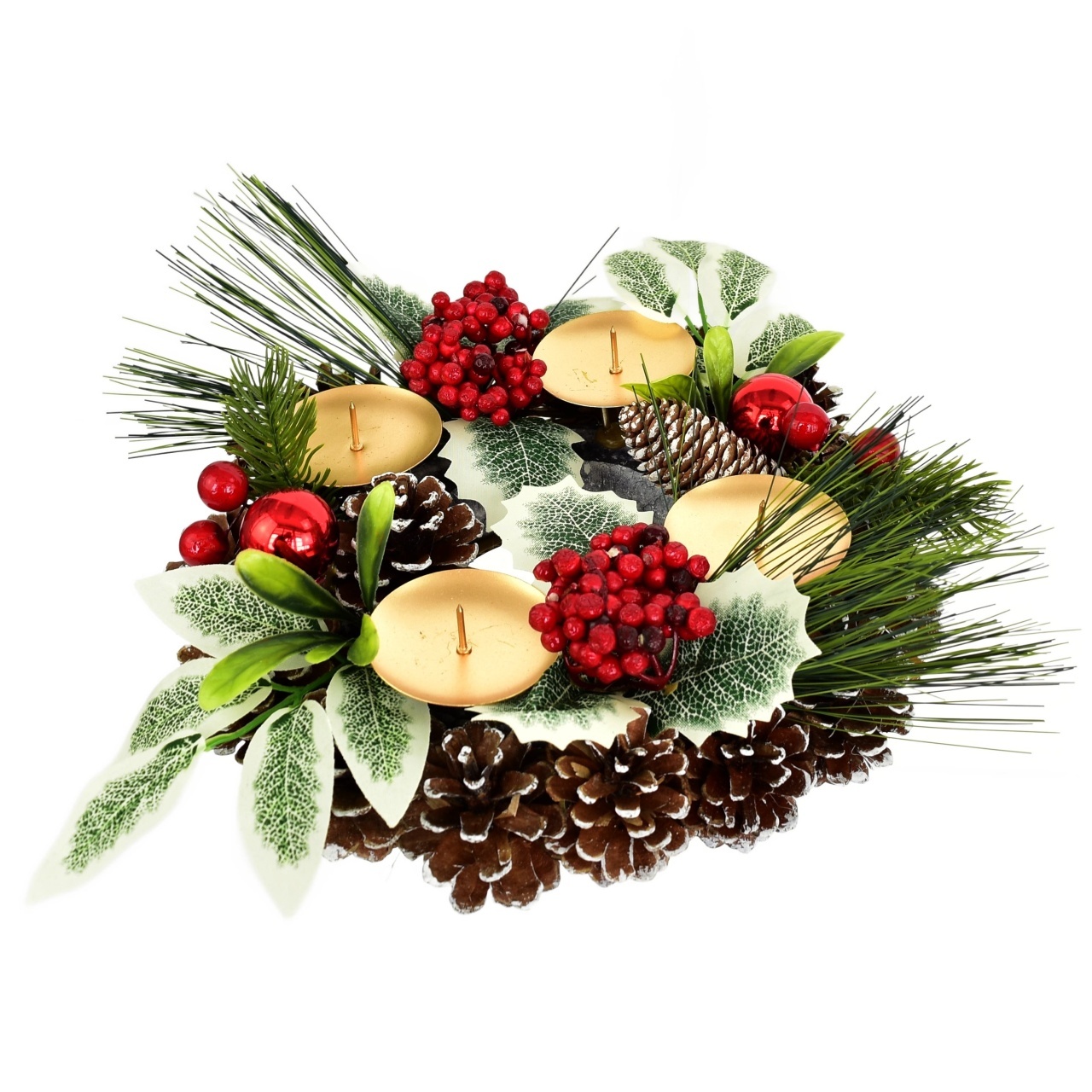 Vytvořte si kouzelnou atmosféru během vánočního období s naším adventním svícnem šiškovým! Tento elegantní kousek je pečlivě zdoben větvičkami cestmíny a borovice a dále červenými kuličkami spolu s bezinkami, čímž přináší kousek přírody přímo do vašeho domova. S průměrem 24 cm a výškou 7 cm se skvěle hodí na jakýkoliv stůl nebo jako ústřední prvek vašeho vánočního dekoru.