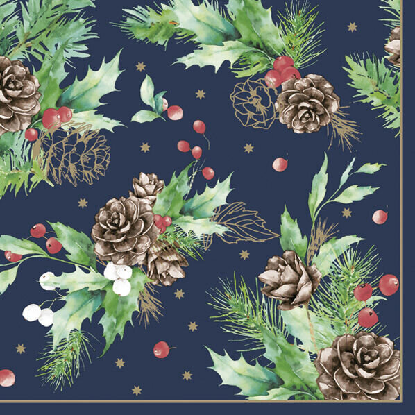 Ubrousky MAKI L (20ks) Cones&Hollyberry on Navy