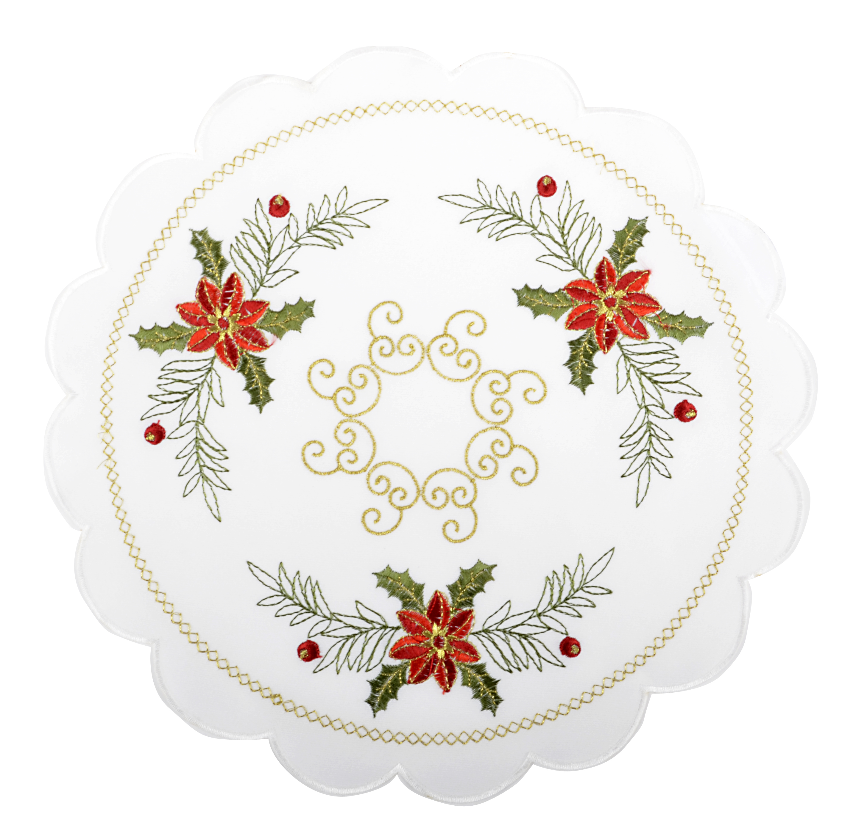 Vánoční ozdobný ubrousek s krásnými vyšívanými vánočními motivy v O 30 cm je důležitým doplňkem pro váš vánoční stůl. číst celé