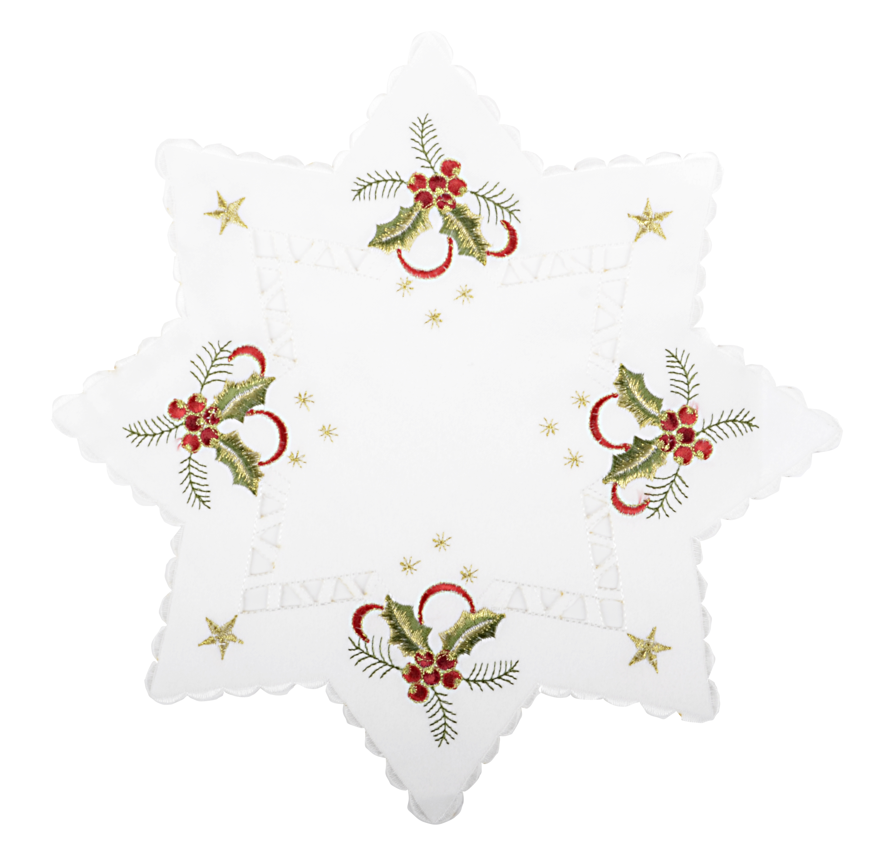 Vánoční ozdobný ubrousek s krásnými vyšívanými vánočními motivy v O 30 cm je důležitým doplňkem pro váš vánoční stůl. číst celé