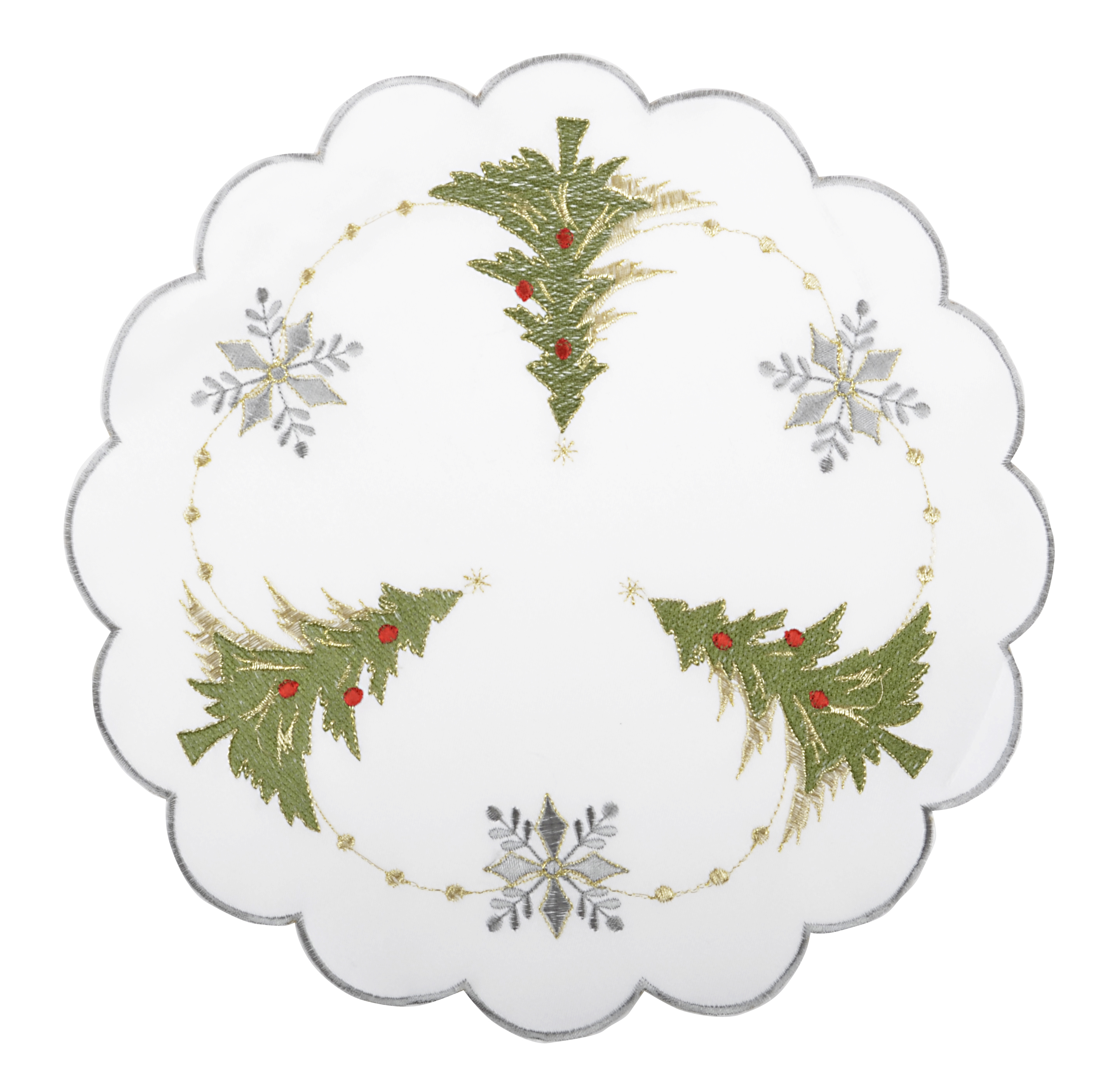 Vánoční ozdobný ubrousek s krásnými vyšívanými vánočními motivy v O 30 cm je důležitým doplňkem pro váš vánoční stůl.