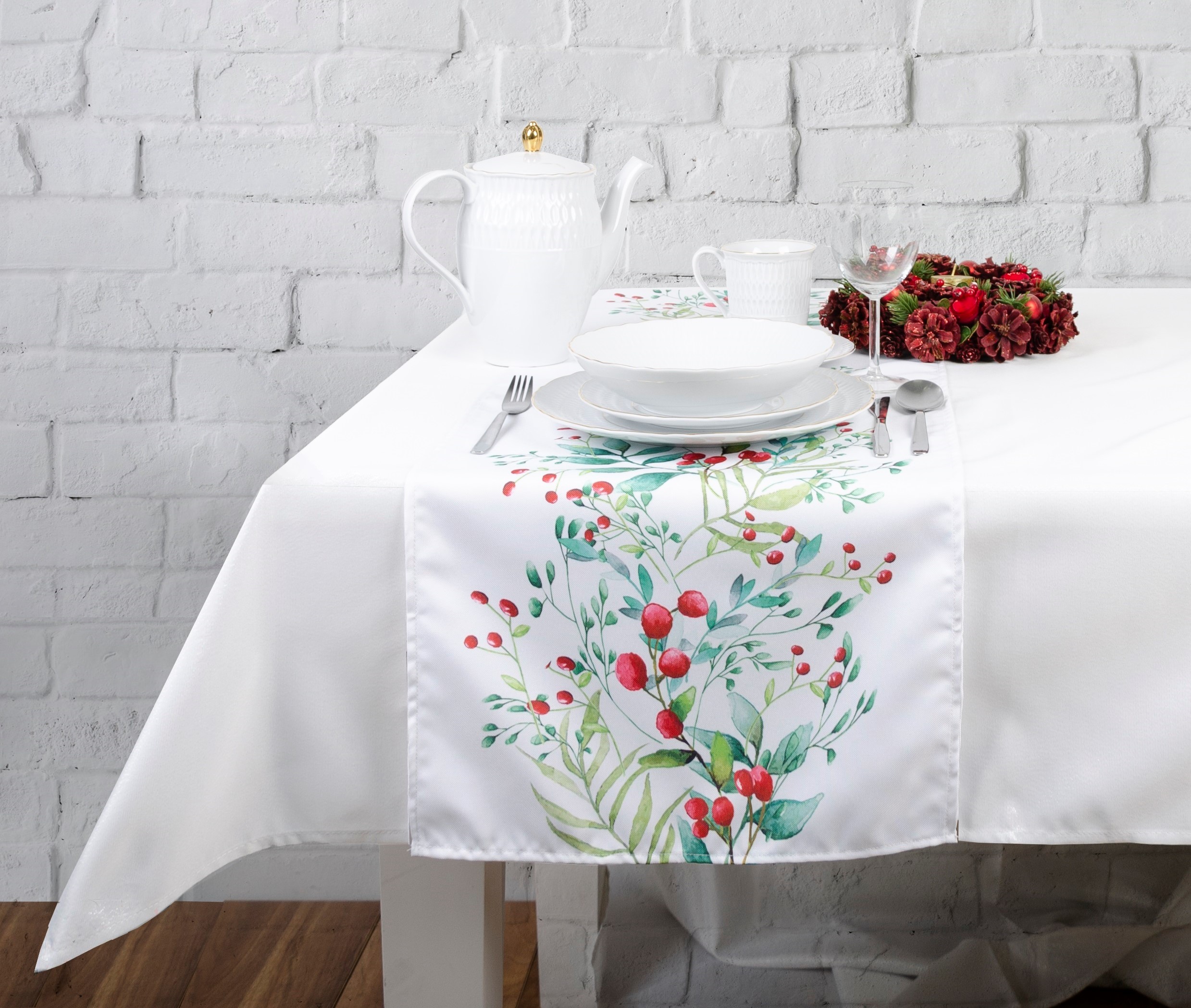 Kvalitní elegantní ubrus- běhoun na stůl v moderním zimním designu. Běhoun na stůl je nabízen ve velikosti 40x140 cm. Ubrus je odolný vůči nečistotám, neabsorbuje vodu. Běhoun na stůl je všestranným a stylovým doplňkem Vaší jídelny. číst celé