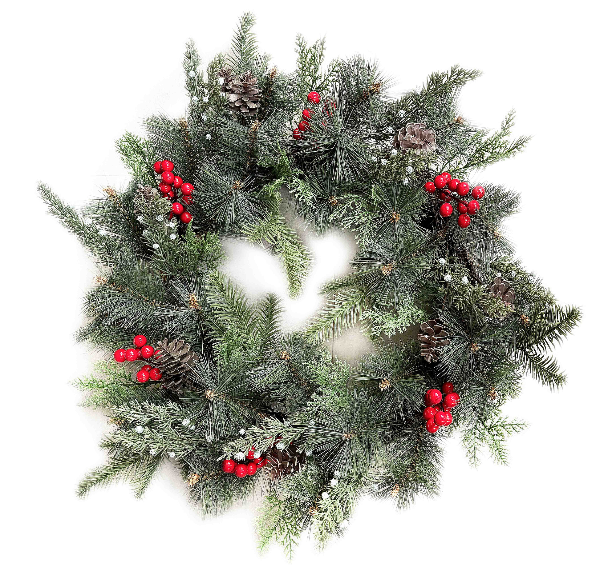 Wprowadź do swojego domu magię zimowych świąt dzięki wianowi z kolekcji VIRIDIS. Ten wyjątkowy wianek o średnicy 55 cm jest pięknie ozdobiony owocami ostrokrzewu, szyszkami i śnieżonym świerkiem, tworząc efektowną dekorację, która doskonale podkreśli uroczystość Bożego Narodzenia.Cechy produktu: Owoce ostrokrzewu: czerwone jagody ostrokrzewu dodają wiankowi żywych akcentów, które przyciągają wzrok i wprowadzają do wnętrza świąteczny nastrój. Naturalne szyszki: starannie dobrane szyszki dodają wiankowi rustykalnego uroku, podkreślając jego naturalny i elegancki charakter. Śnieżony świerk: gałązki świerku pokryte delikatną warstwą sztucznego śniegu tworzą zimowy efekt, który idealnie komponuje się z innymi elementami dekoracji. Wysoka jakość wykonania: wszystkie materiały są trwałe i odporne na blaknięcie, co zapewnia długotrwały efekt i zachowanie świeżego wyglądu przez cały sezon. Gotowy do zawieszenia: wianek jest w pełni gotowy do użytku i może być zawieszony na drzwiach, ścianach czy oknach, stanowiąc centralny punkt świątecznego wystroju. Łatwy w pielęgnacji: nie wymaga podlewania ani specjalnej konserwacji wystarczy przetrzeć wilgotną ściereczką, aby zachować jego estetyczny wygląd.Zastosowanie na Boże Narodzenie:Wianek VIRIDIS z owocami ostrokrzewu, szyszkami i śnieżonym świerkiem to idealna dekoracja na Boże Narodzenie, która wnosi do Twojego domu ciepło i świąteczny nastrój. Jego klasyczny design i eleganckie zdobienia sprawiają, że jest doskonałym wyborem dla osób, które cenią sobie tradycyjne, naturalne ozdoby. Użyj go jako centralny element dekoracji świątecznego stołu lub zawieś na drzwiach, aby powitać swoich gości w wyjątkowej, bożonarodzeniowej atmosferze.