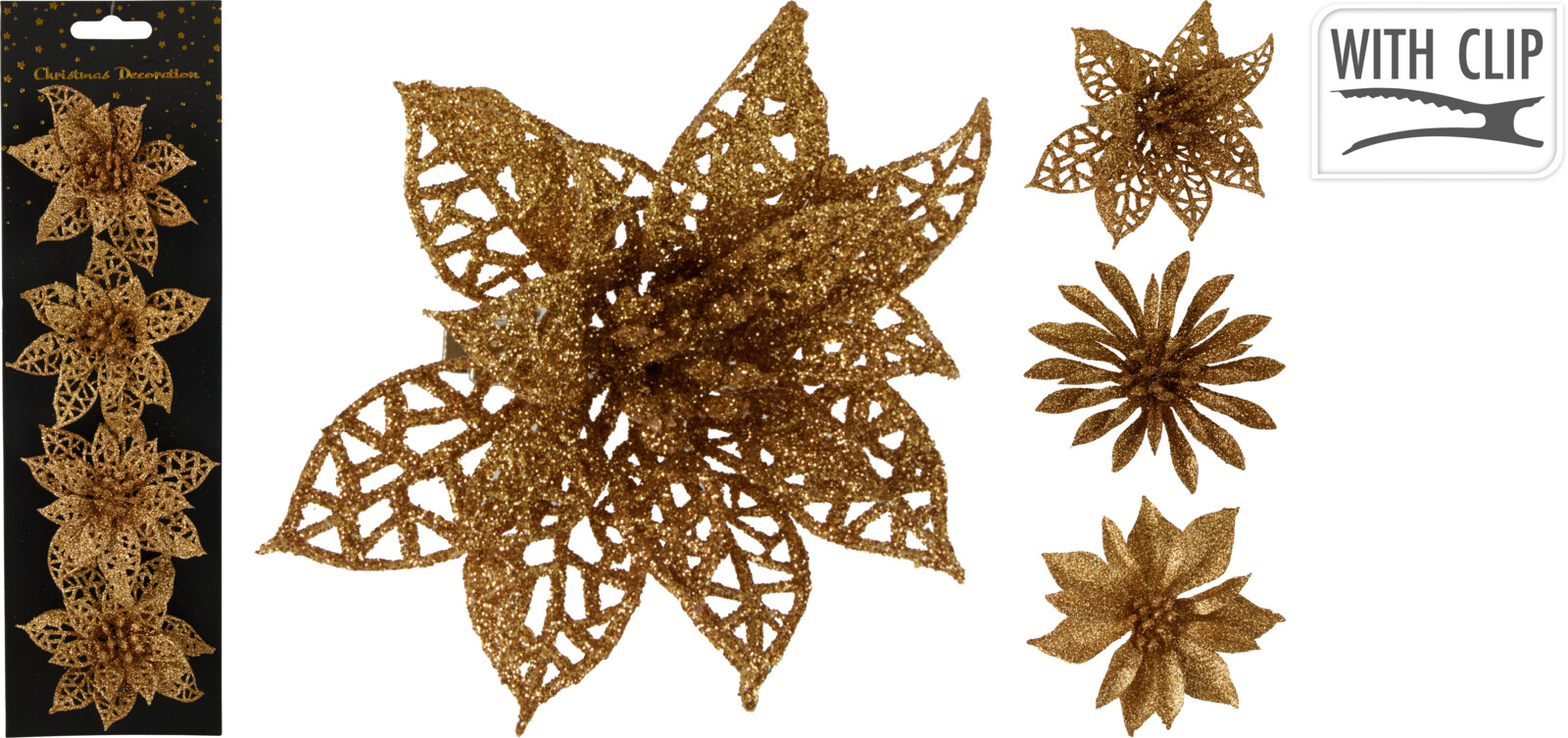 Komplet 4 KWIATÓW NA KLIPSIE Z BROKATEM