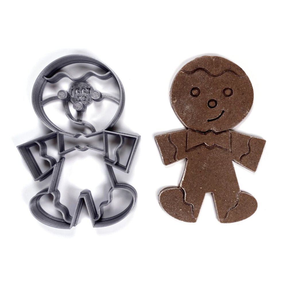 Inovativní tiskárenskou technologií 3D bylo navrženo a zhotoveno vykrajovátko ve tvaru perníčku. K výrobě byl použit plastový materiál PLA (biologicky odbouratelný), odolný do 50°C, nevhodný do myčky na nádobí. Výhodou vykrajovátka je středová linie, která vytlačí do hmoty detaily obrázku a zjednoduší tak zdobení. Skvěle se hodí pro práci s polotuhými hmotami jako jedlá těsta (na perníčky, sušenky, cukroví), fondán, marcipán, a také pro nejedlé hmoty jako plastelína, Play-Doh, Modurit, keramická hlína, Fimo apod. Před prvním použitím a vždy po použití vykrajovátko omyjte jarovou vodou a důkladně osušte. Pro snazší vykrajování těst je vhodné vykrajovátko nejprve vložit do misky s moukou. Není určeno pro děti do 3 let, hrozí odlomení malých částí.