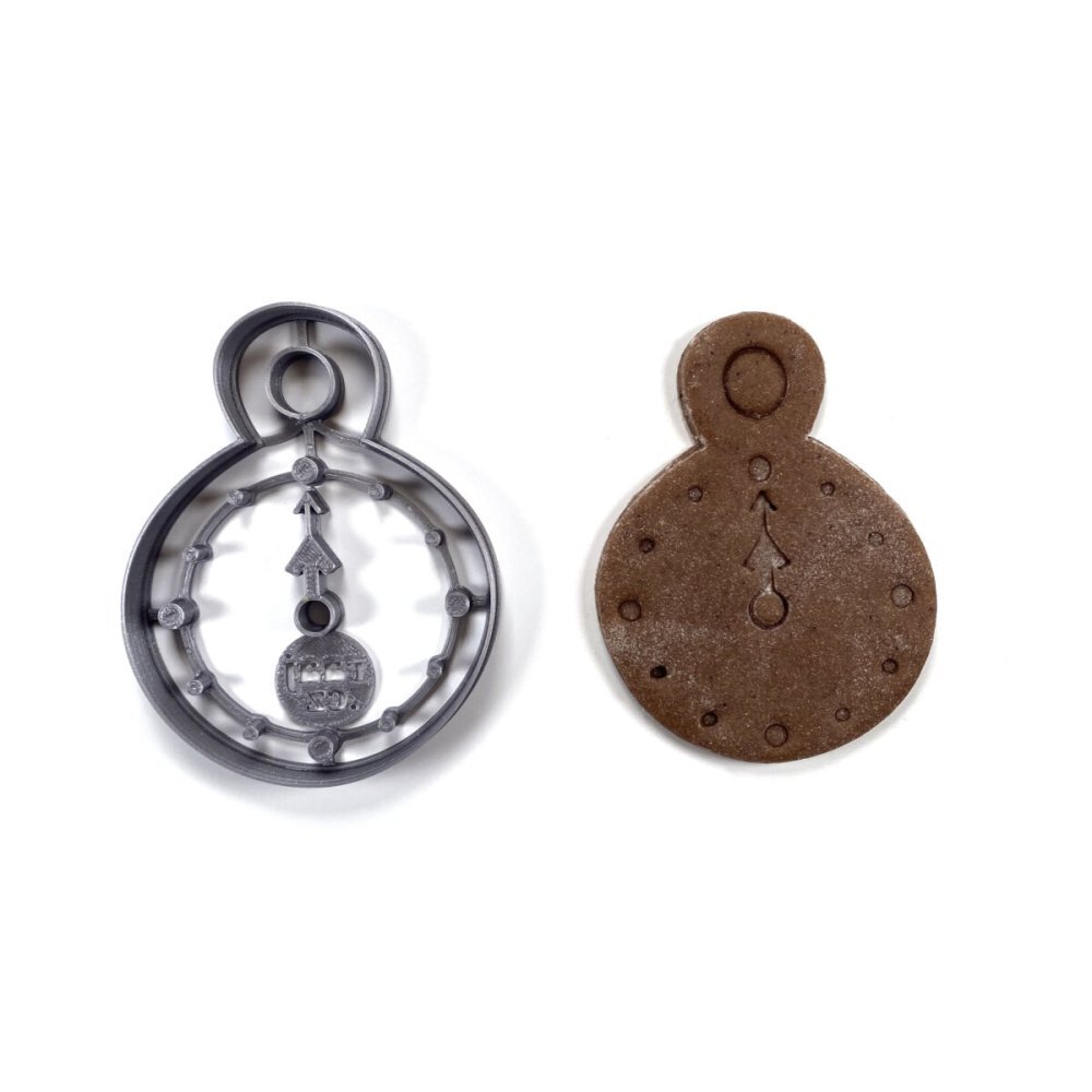 Moderní technologií 3D tisku vytváříme vykrajovátko ve tvaru hodin ukazující půlnoc, z plastového materiálu PLA (biologicky odbouratelný), odolný do 50°C, nevhodný do myčky na nádobí. Užitečným doplňkem našeho vykrajovátka je středová linie, jelikož usnadňuje zdobení. Toto vykrajovátko má využití při práci s hmotami jako jedlá těsta (na perníčky, sušenky, cukroví), fondán, marcipán, a také pro polotuhé nejedlé hmoty jako plastelína, Play-Doh, Modurit, keramická hlína, Fimo apod. Před prvním použitím a vždy po použití vykrajovátko omyjte jarovou vodou a důkladně osušte. Pro snazší vykrajování těst je vhodné vykrajovátko nejprve vložit do misky s moukou. Není určeno pro děti do 3 let, hrozí odlomení malých částí.