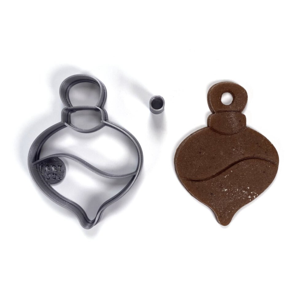 Vykrajovátko ve tvaru baňky je vyrobeno pomocí 3D tisku, z materiálu PLA plast (materiál biologicky odbouratelný), odolný do 50°C, nevhodný do myčky na nádobí. Se středovými liniemi vykrajovátka snadno otisknete tvar vánoční ozdoby do hmoty. Vhodné je pro různé polotuhé hmoty jako je těsto (na perníčky, sušenky, linecké cukroví), fondán, marcipán, plastelína, Play-Doh, Modurit, keramická hlína, Fimo apod. Před prvním použitím a vždy po použití vykrajovátko omyjte jarovou vodou a důkladně osušte. Pro snazší vykrajování těst je vhodné vykrajovátko nejprve vložit do misky s moukou. Není určeno pro děti do 3 let, hrozí odlomení malých částí.