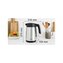 Pohodlná příprava oblíbeného nápojeSpotřebič má lesklý nerezový ocelový design, který mu dodává moderní vzhled. Díky ukazateli provozu získáte perfektní přehled o zapnutí zařízení. Konvice Bosch TWK7L460 má zdokonalenou nálevku a rukojeť, která umožňuje snadné přenášení. K tomu přispěje i nízká hmotnost pouhých 1,3 kg. Optimální nálevka zajišťuje bezpečné plnění tekoucí vodou bez sebemenšího kapání. Ani péče o varnou konvici nepředstavuje žádný problém. Odvápňovací filtr vaši vodu udrží bez nečistot, které se nacházejí uvnitř vodovodního kohoutku.