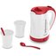 Tato cestovní rychlovarná konvice SENCOR SWK 150RD s objemem 0,5 litru je navržena tak, aby byla malá, ale přitom plně funkční. Díky zakryté topné spirále s příkonem 1100 W dosáhnete rychlého ohřátí vody bez zbytečných ztrát energie. Součástí balení jsou také dva šálky a dvě lžičky, takže si horký čaj nebo kávu můžete vychutnat okamžitě po ohřátí vody.