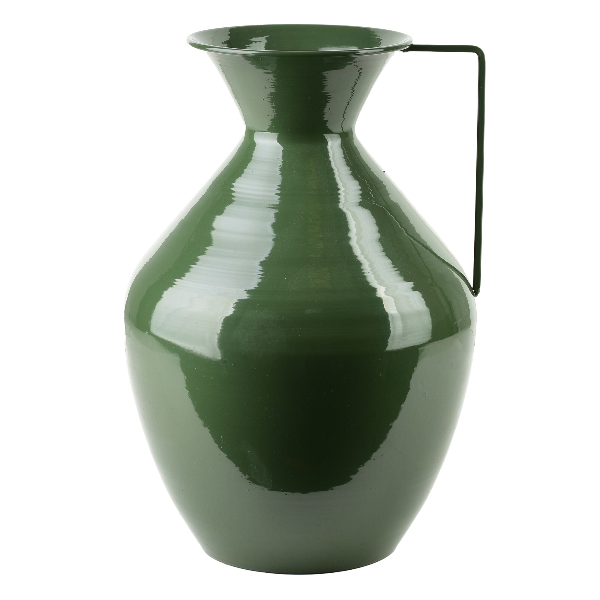 ROGER Wazon 15,7 x 25 x h37 cm. Nowoczesny wazon o modernistycznej formie, wykonany z metalu i wyposażony w praktyczny uchwyt, który dodaje mu wyjątkowego charakteru. Jego oryginalny design sprawia, że doskonale wyróżnia się we wnętrzu, pełniąc nie tylko funkcję użytkową, ale przede wszystkim dekoracyjną.Metalowa konstrukcja gwarantuje trwałość i stabilność, a minimalistyczne, geometryczne proporcje nadają mu elegancji oraz wyrafinowanego stylu. Może być używany jako samodzielna ozdoba, przyciągająca wzrok swoim unikatowym kształtem, bądź jako wazon na świeże i suszone kwiaty, które dodatkowo podkreślą jego formę.To wyjątkowy element aranżacyjny, który znakomicie wpisuje się w nowoczesne i loftowe przestrzenie, ale równie dobrze dopełni klasyczne wnętrza, wprowadzając do nich nutę świeżości i współczesnego stylu. Idealny wybór dla osób ceniących elegancję w połączeniu z funkcjonalnością.