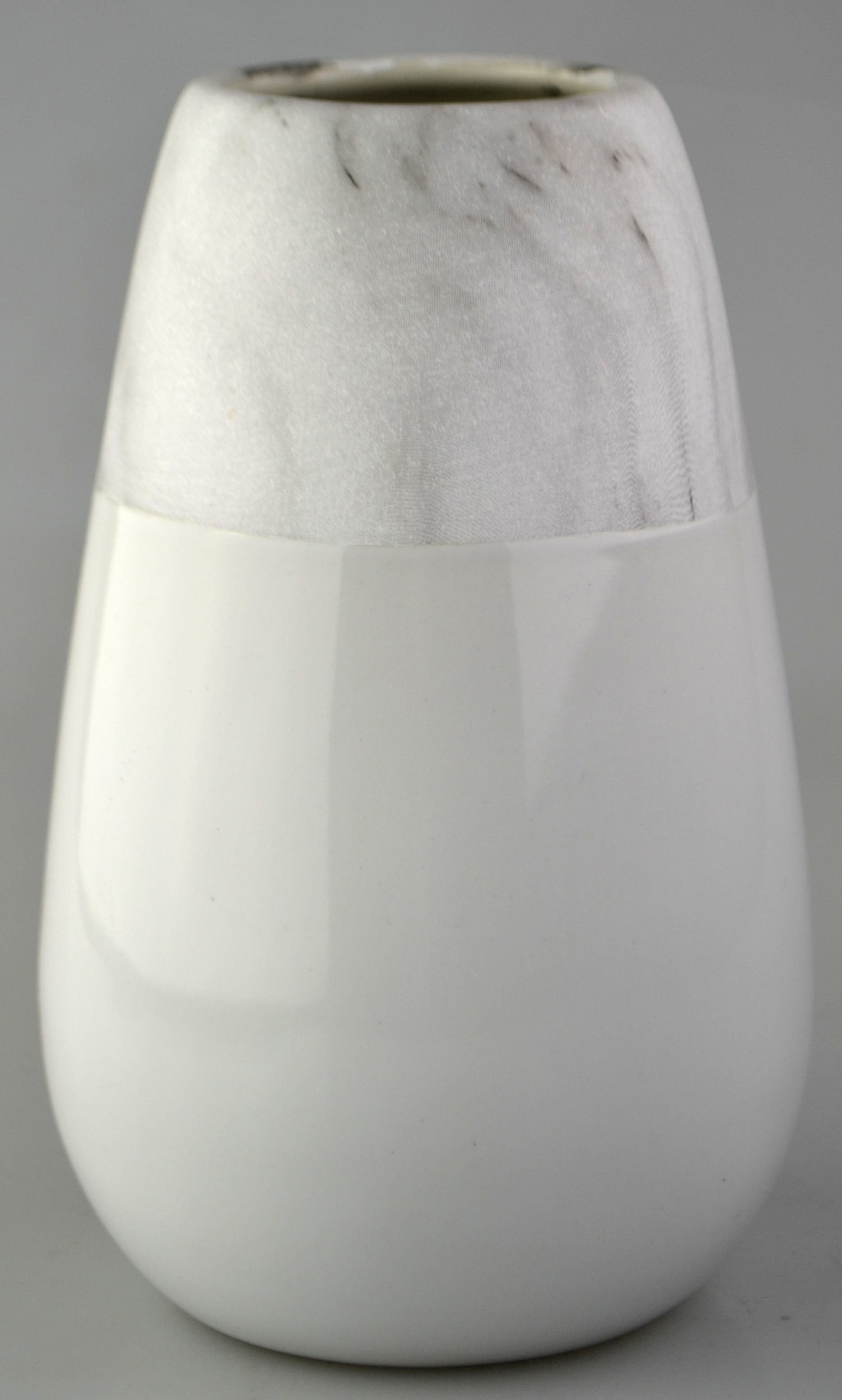 Jednoduchý a přitom velmi propracovaný design vázy se úžasně hodí na všechny druhy květin nezávisle na ročním období, ale i vystavená váza samotná bude krásnou dekorací. Materiál - keramika. Rozměry - výška 17 cm, 10,7x10,7 cm.