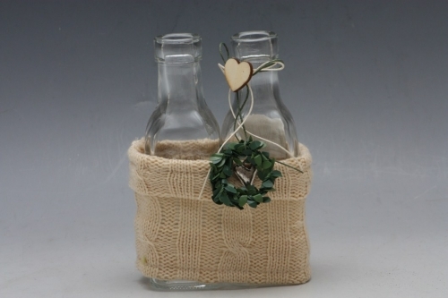 Sada 2 skleněných láhvi v bavlněném úpletu.Rozměr: 10 x 5 x 16 cm. číst celé
