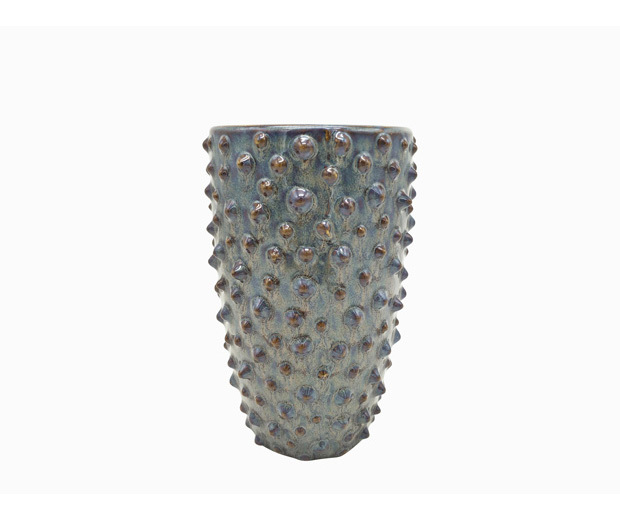 Keramická váza s tečkovaným vzorem v tmavě šedé barvě.