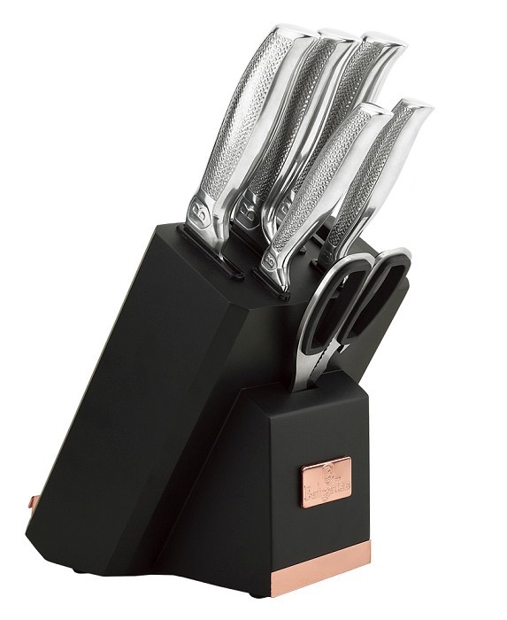BERLINGERHAUS Sada nožů ve stojanu s držákem na tablet a brouskem 7 ks Black Rose Kikoza Collection BH-2339