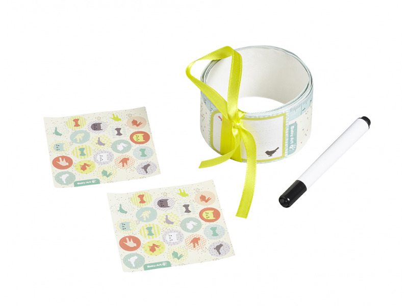 Vzpomínkový metr Baby Art Once Upon a Time vám umožní zaznamenat si originálním způsobem důležité okamžiky Vašeho těhotenství. První pohyby, první ultrazvuk a další momenty, které si budete chtít pamatovat a jednou si o nich povídat se svým dítětem. Sada obsahuje metr z příjemného materiálu s vázací stužkou, samolepky pro označení obvodu Vašeho bříška a popisovač.