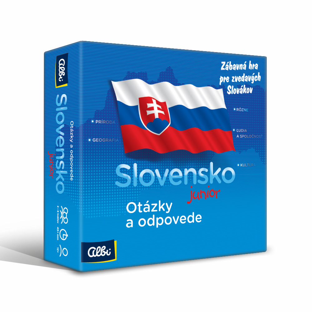 Zábavná hra pre zvedavých Slovákov. Myslíte si, že dobre poznáte svoju krajinu? Hra nadväzuje na úspech hry Slovensko - Otázky a odpovedeHru sme upravili a vytvorili 1 200 nových otázok na zaujímavé témy prístupnejšie mladším hráčom. Súťažiť môžu celé rodiny s deťmi už od 10 rokov. Otázky sú komponované tak, aby neboli triviálne a aby ste sa aj o známych ľuďoch, miestach i udalostiach zábavnou formou dozvedeli veci, ktoré možno ani netušíte. Kartičky s otázkami sú rozdelené do štyroch okruhov: ľudia a spoločnosť, príroda a geografia, kultúra a rôzne. Každou správnou odpoveďou sa dostávate bližšie k cieľu. Žiadnemu z okruhov sa nevyhnete, ale môžete získať na tých, v ktorých máte väčší prehľad. Na to, aby ste v hre zvíťazili, budete potrebovať aj trochu šťastia. Herný materiál: 300 kariet s 1200 otázkami a odpoveďami, herný plán, 6 figúrok, 24 žetónov s mapou Slovenskej republiky v štyroch farbách, kocka, pravidlá.