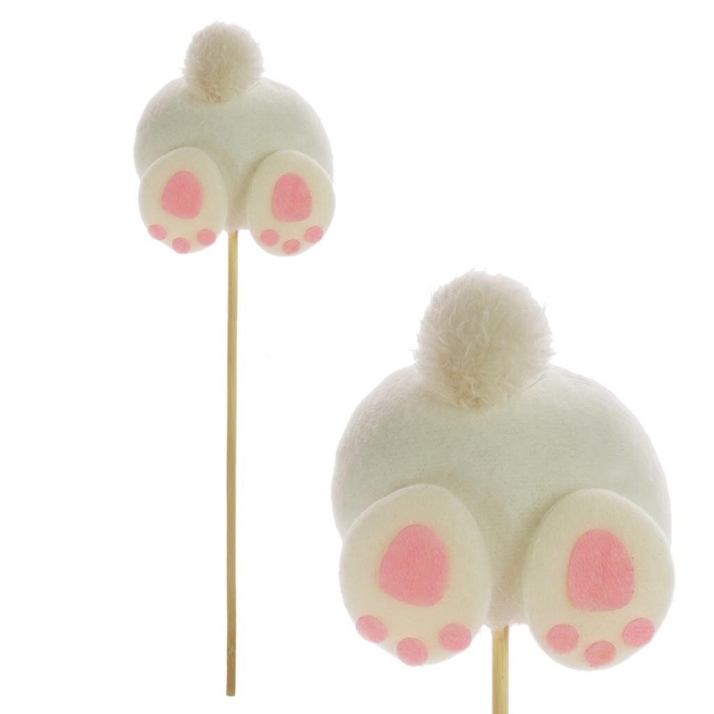 Zajączek na piku o wysokości 30,5 cm to oryginalna dekoracja przedstawiająca tył zajączka z łapkami i pomponikiem jako ogonkiem. Doskonale nadaje się do stroików, wazonów i doniczek, dodając im zabawnego charakteru.