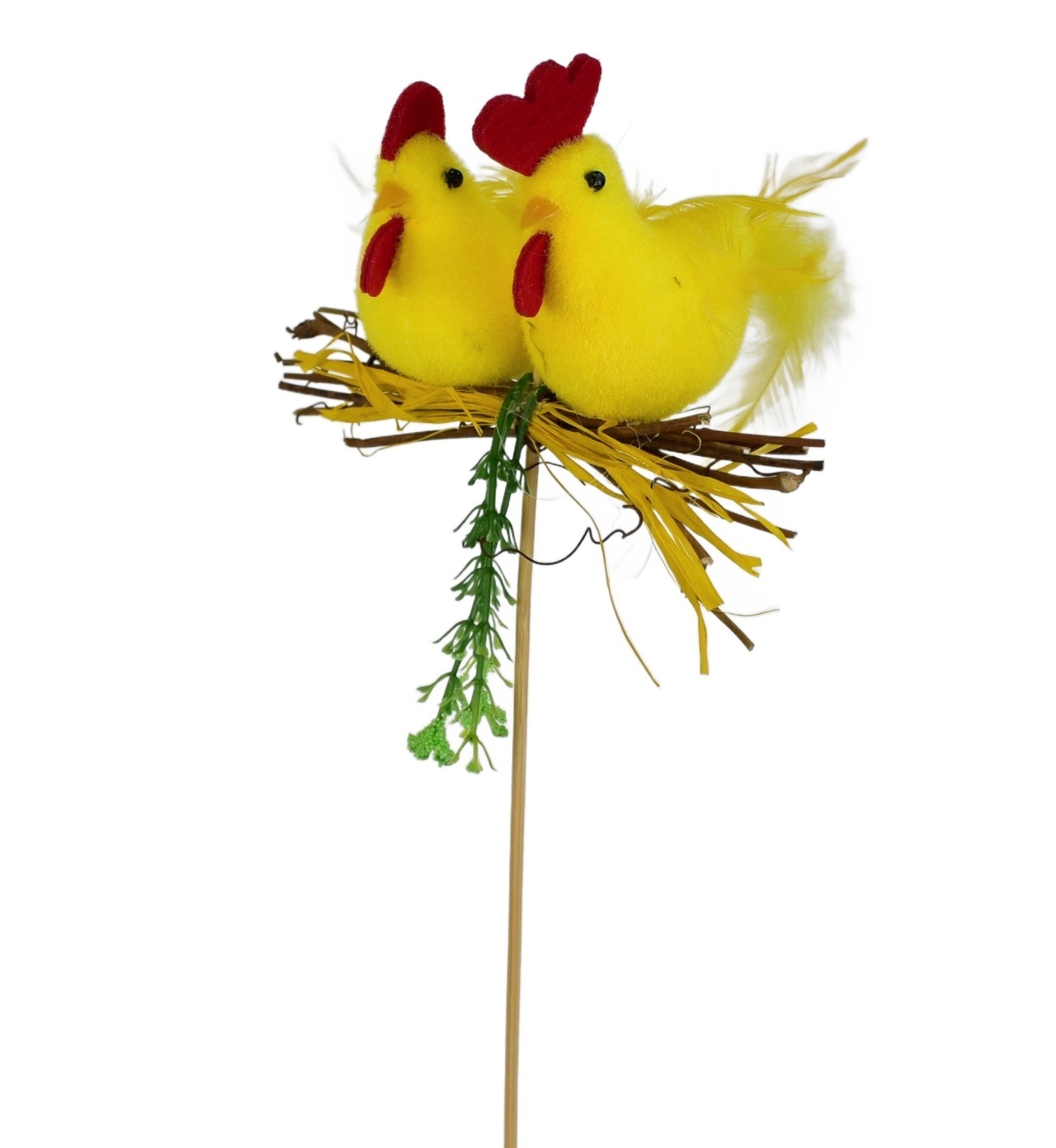 Udělejte si Velikonoce ještě víc jedinečné s touto úžasnou dekorací! Slepička s kohoutkem na otýpce a lýkovou mašlí je dokonalým doplňkem do vaší domácnosti. Vyrobená s láskou a precizností, tato velikonoční dekorace přinese do vašeho domova radost a veselí. S velikostí 35 cm včetně špejle a rozměry zvířátek 6x9 cm, se tento kreativní kousek stane hlavní atrakcí na vašem stole či polici.
