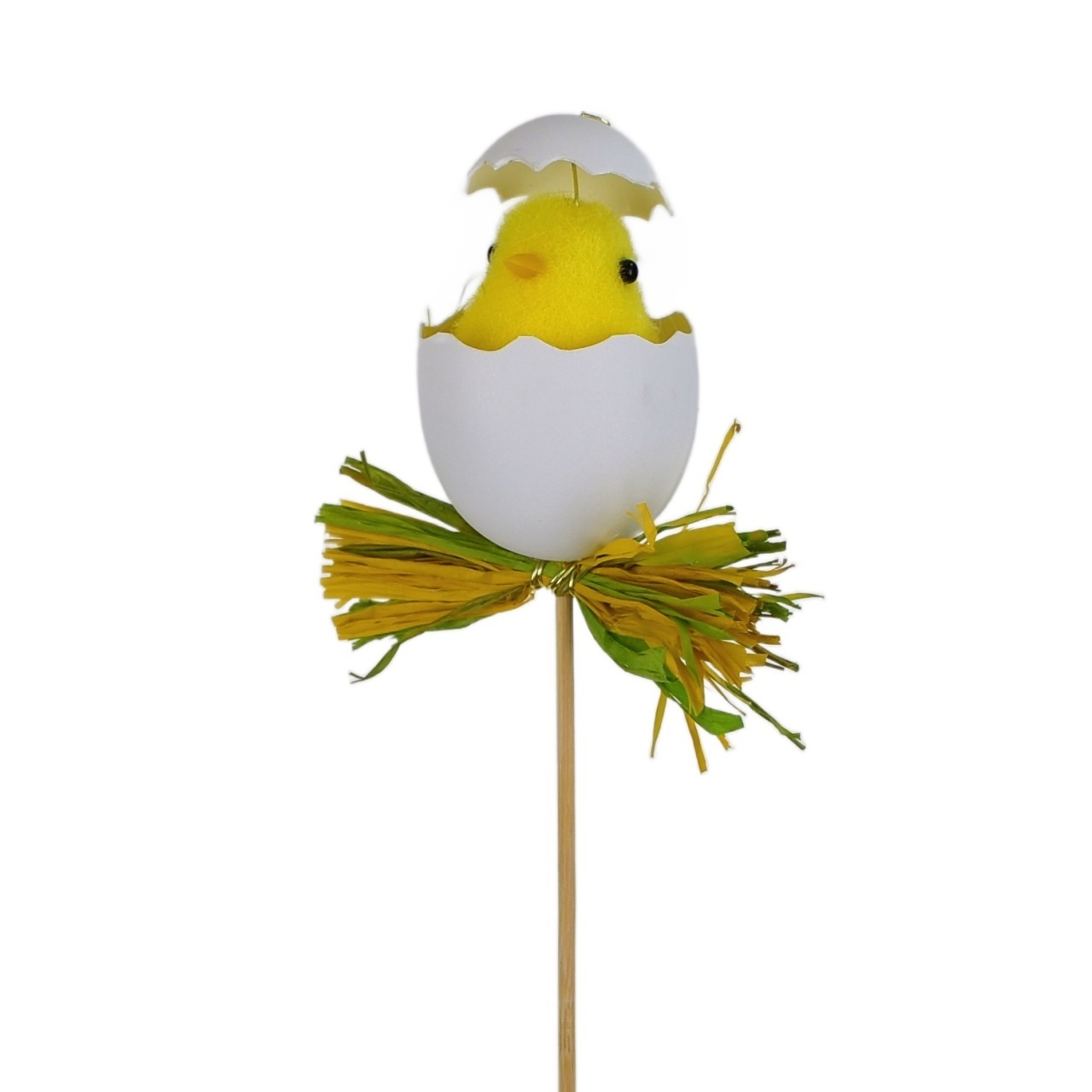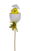 Tento zápich se skládá z kuřátka ve vajíčku, které je umístěno na špejli. S jeho výškou 35 cm (včetně špejle) a kuřátkem o velikosti 8 cm, je tento velikonoční dekorativní předmět ideální na umístění na stůl, polici nebo jako ozdoba do květinového aranžmá.