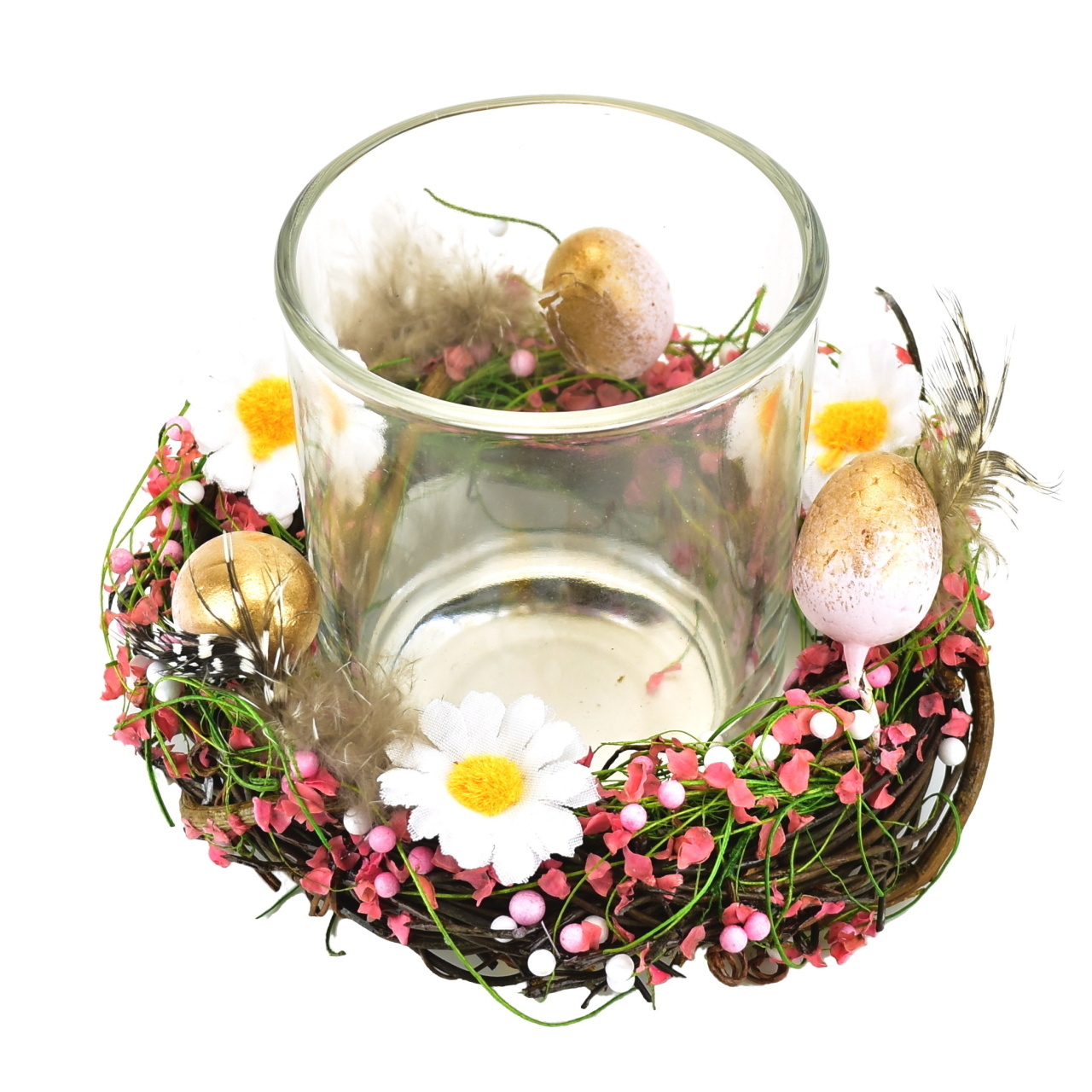 Design: Proutěný věneček zdobený pozlacenými vajíčky, peříčky, kytičkami a okvětními lístky