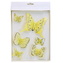 Sada 6 ks dekoračních motýlků ve žluté barvě je přesně to, co potřebujete pro vytvoření úžasné atmosféry. Tyto motýlky mají kovový skřipec, který jim dodává stabilitu. Jsou vyrobeny z kvalitního textilu, plastu a kovu.