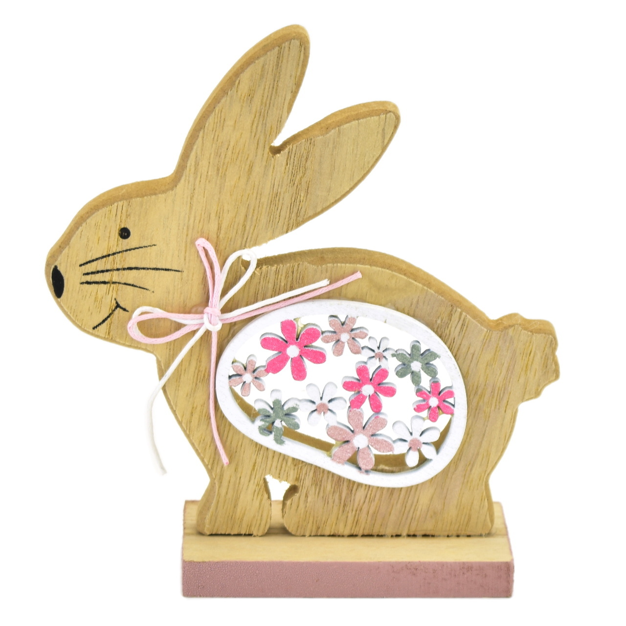 Velikonoční dřevěný zajíček s kytičkami 12 cm je skvělým doplňkem pro váš velikonoční stůl nebo jako malý dárek pro vaše blízké. Tento ručně vyrobený zajíček je vyroben z kvalitní překližky a má perfektně perforovanou výplňovou část v podobě krásných kytiček a mašličky. Jeho velikost je 12 x 13 cm (výška x šířka), což mu dodává ideální proporční vzhled.