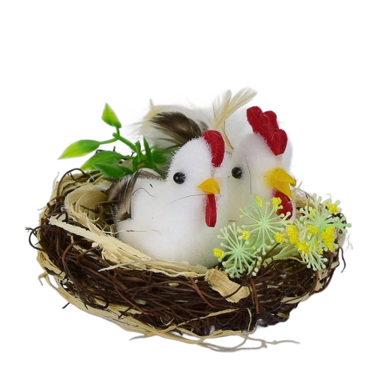 Slepička s kohoutkem v hnizdečku 7x9 cm je skvělou volbou pro Velikonoce. Tato originální dekorace přináší unikátní atmosféru do vašeho domova nebo zahrady. Slepička s kohoutkem je ručně vyrobena a pečlivě uhnízděna v proutěném hnizdečku, který dodává celé kompozici tradiční venkovský šmrnc. Díky velikosti 7x9 cm se pohodlně vejde kamkoliv a vytvoří neodolatelnou vánoční scénu.