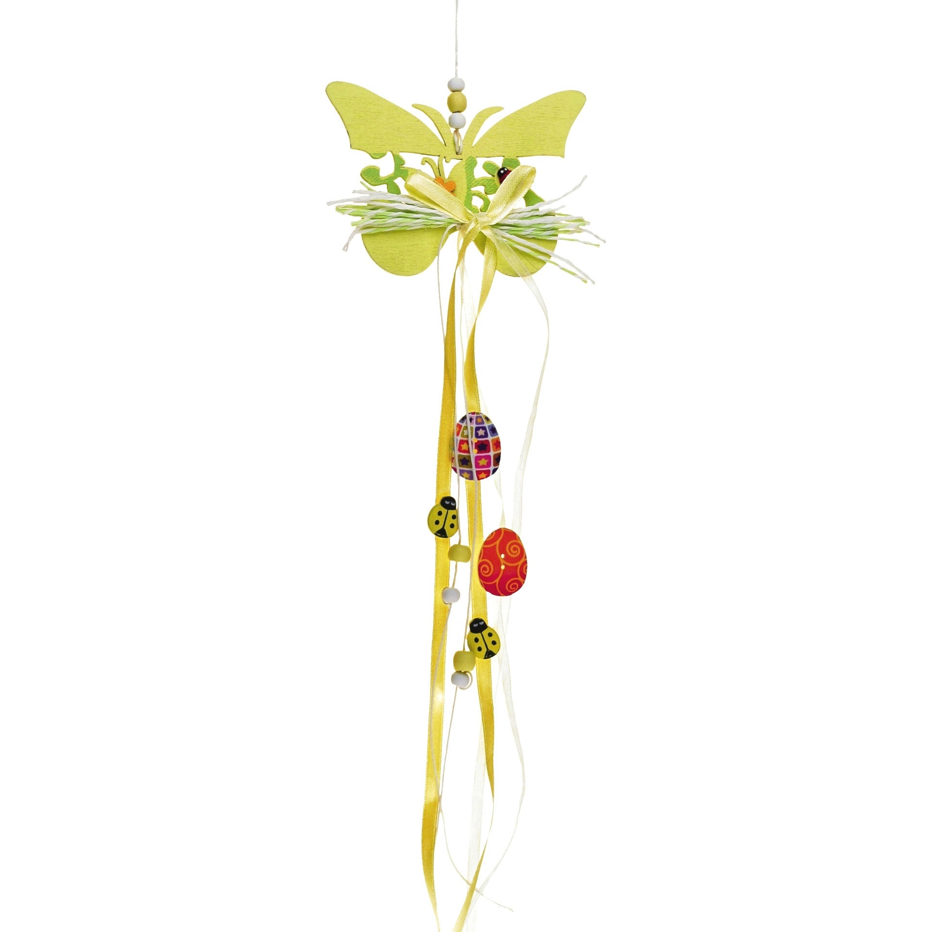 Motýl na zavěšení je ideální dřevěná dekorace pro všechny milovníky jara a velikonočních svátků. Tento žlutý motýlek dodá šmrnc nejen vašemu interiéru, ale také exteriéru. S jeho rozměry 45 x 10 cm se skvěle hodí na zavěšení do okna, na stěnu nebo jako součást jarní výzdoby.