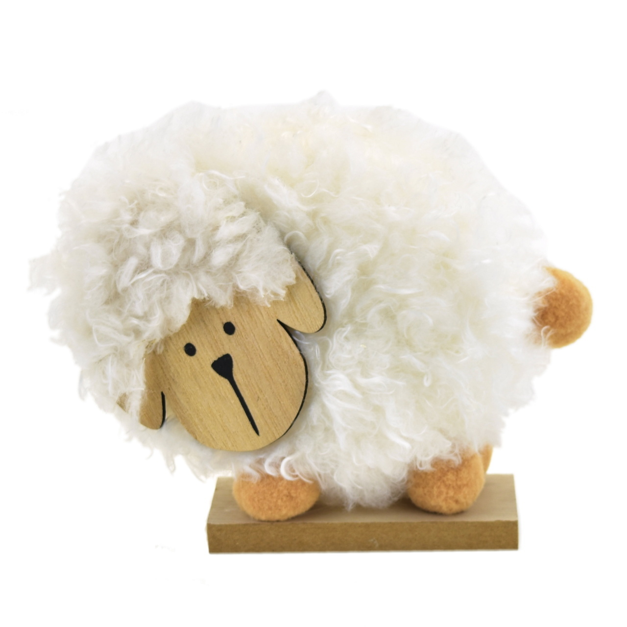 Velikonoční plyšový beránek s dřevěným stojánkem