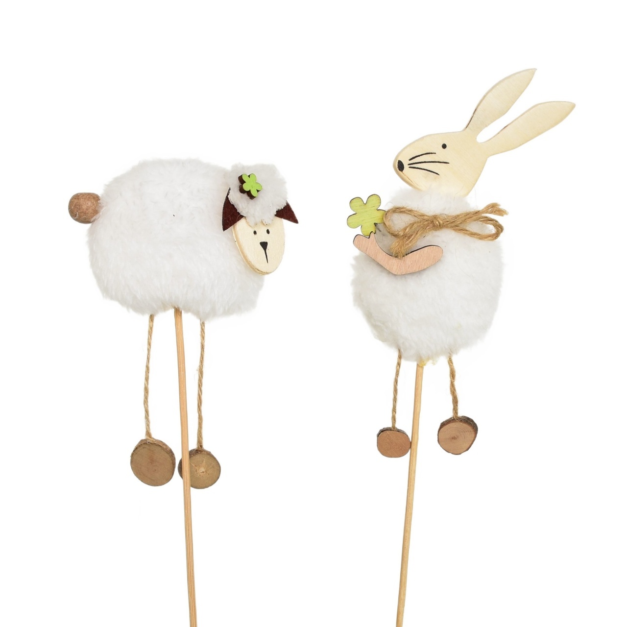 Zápich ovečka a zajíček plyšový - set 2 ks