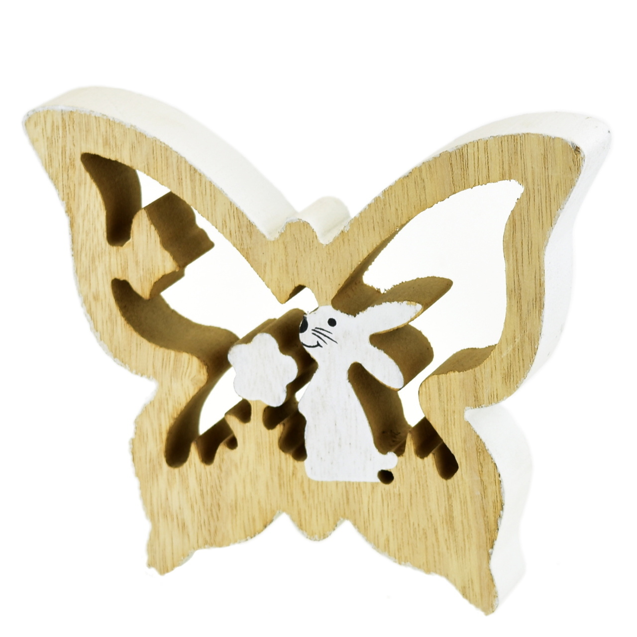 Dopřejte si nádhernou dekoraci do svého domova s tímto úžasným dřevěným motýlem se zajíčkem a květinou! Tato dekorace je perfektním doplňkem do vaší přírodní a bílé interiéru.