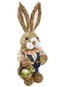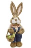 Stylizovaný v modrých džínových kalhotech, tento zajíc nese košíček s koledou, který přidává hravou atmosféru. Je to skvělý dárek nebo dekorace pro váš domov či zahradu.