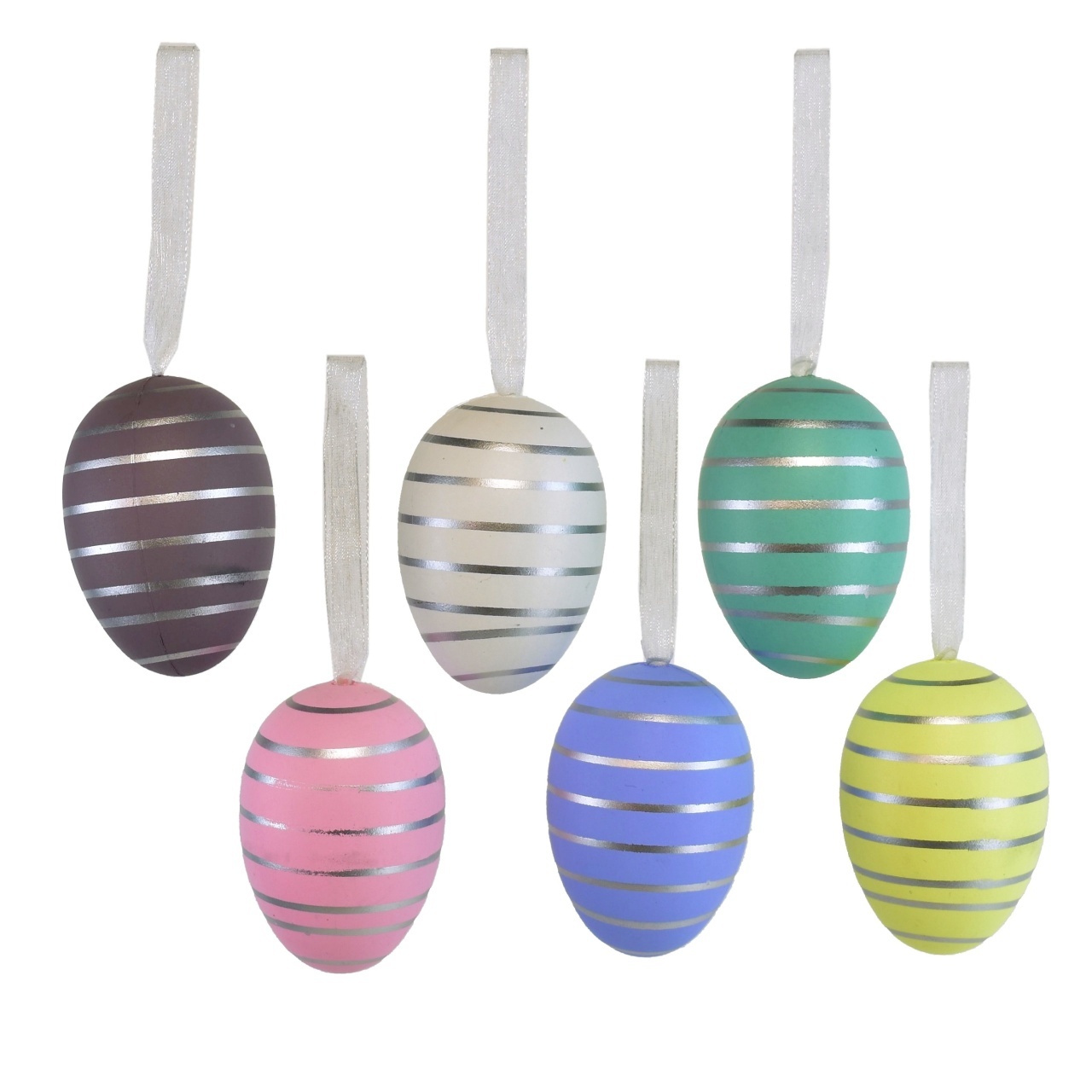 Velikonoční vajíčka s proužky 6 ks, 6x4 cm