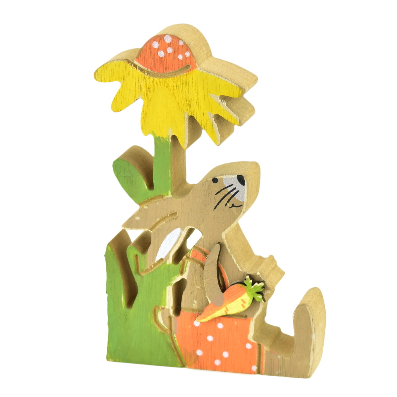Krásný dřevěný velikonoční zajíček, který přinese do vašeho domova radost a veselí! Sedící zajíček má velikost 15 cm a je vyroben z kvalitní překližky. Na jeho zádech najdete roztomilou květinu, která dodá zajíčkovi ještě více barev a života.