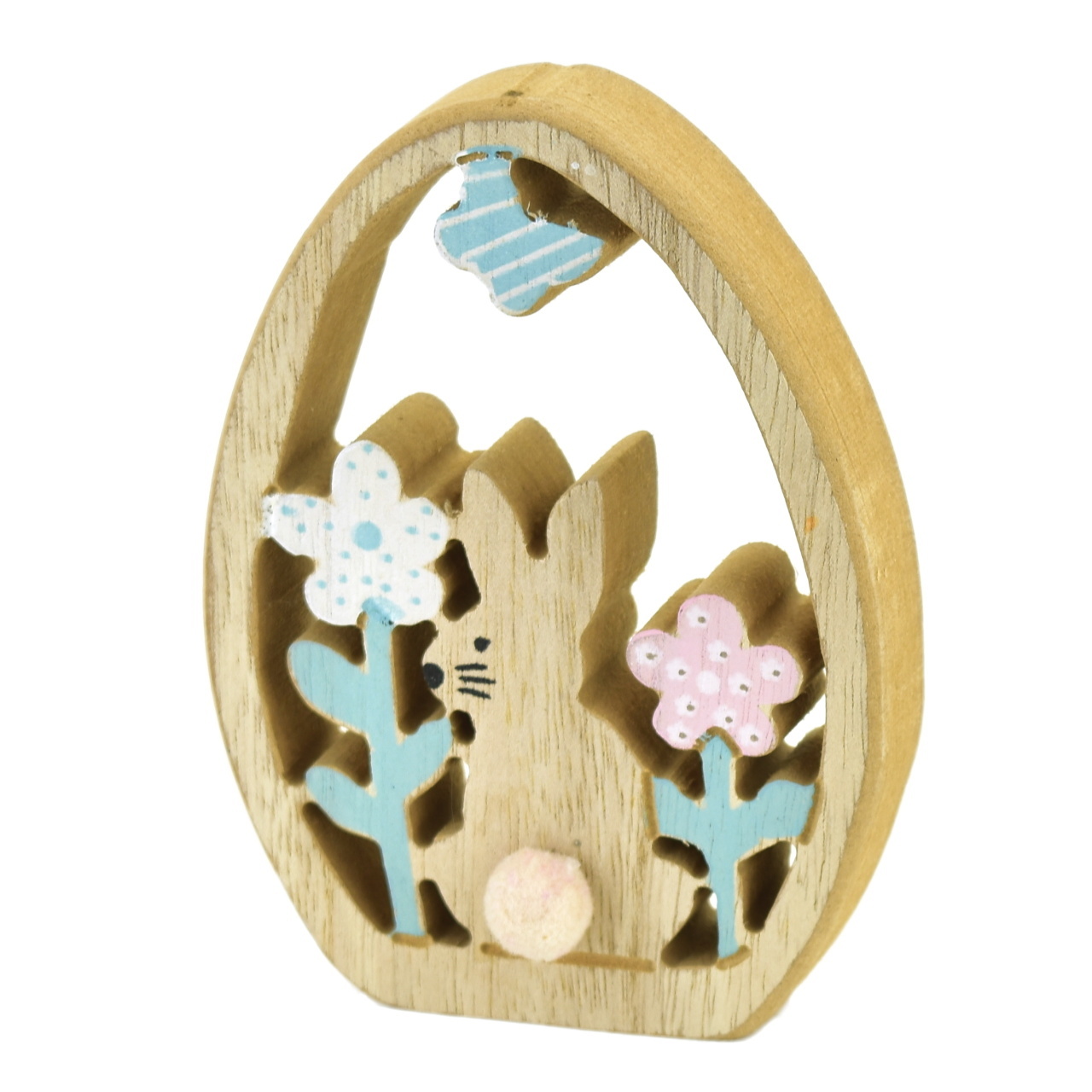 Originální velikonoční dřevěné vajíčko se zajíčkem je určeno pro ty, kteří chtějí přinést do svého domova barvy a radost na svátky. Toto kouzelné dřevěné vajíčko je zdobeno s úžasnými květinami a je doplněno plyšovým ocáskem a motýlkem, které dodávají vajíčku nádech hravosti. S rozměry 13 x 9,5 cm (v. x š.) je to ideální velikost pro vystavení na stole, poličce nebo dokonce zavěšení na stromeček. Díky překližce je vajíčko odolné a může sloužit jako dekorace nejen během Velikonoc, ale i po celý rok.