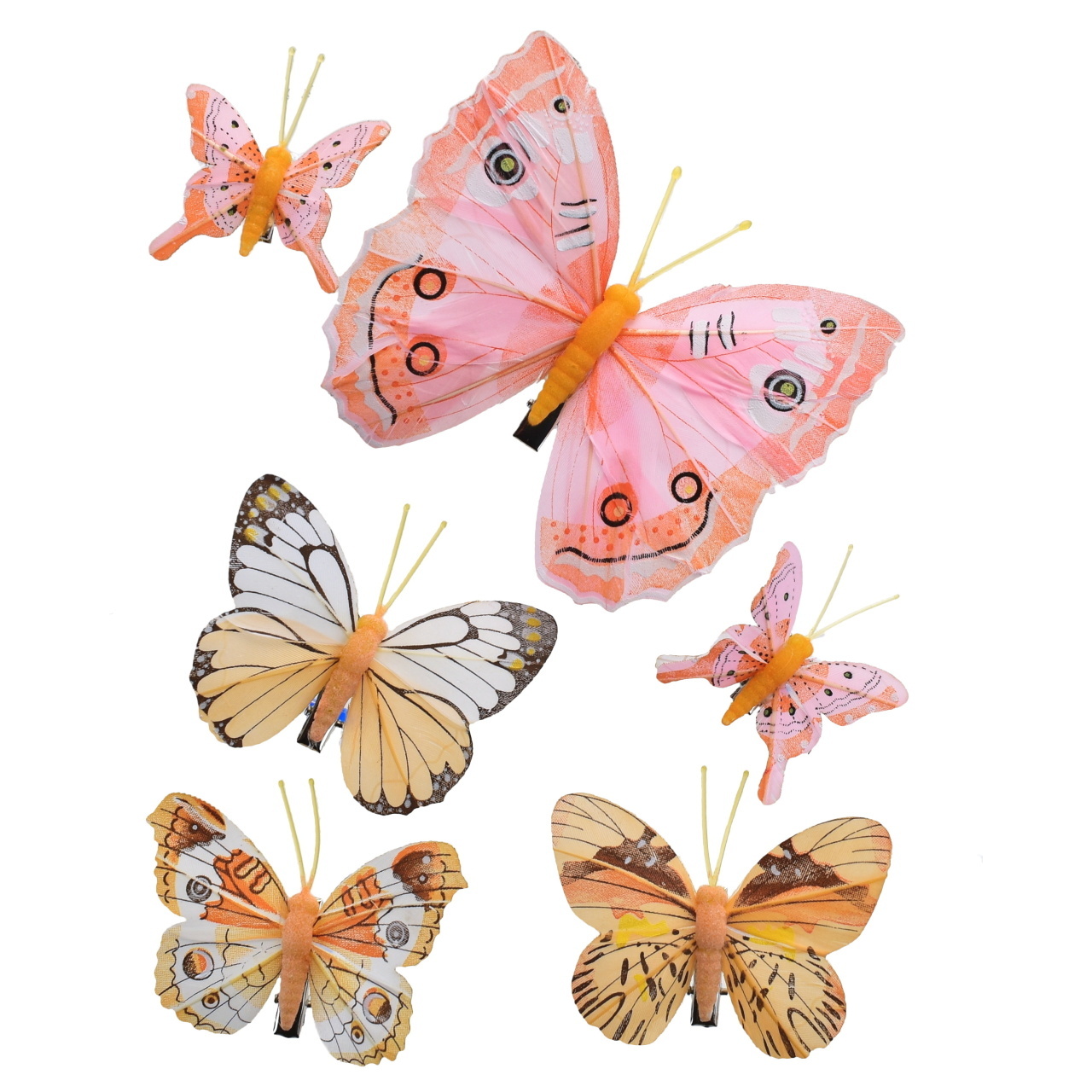 Sada 6 ks dekoračních motýlků v oranžovébarvě je přesně to, co potřebujete pro vytvoření úžasné atmosféry. Tyto motýlky mají kovový skřipec, který jim dodává stabilitu. Jsou vyrobeny z kvalitního textilu, plastu a kovu.