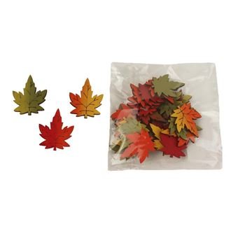 Sada podzimních přízdob.Sada obsahuje 24 přízdob.Rozměry : 2,6 x 0,3 cm, výška 3 cm.Barva : kombinace oranžová, zelená, červená.Materiál na bázi dřeva.