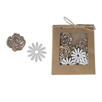 Sada dekoračních přízdob.Sada obsahuje 12 přízdob.Rozměry : průměr 3,3 cm, tloušťka 0,3 cm.Barva : kombinace bílá, hnědá.Materiál na bázi dřeva. číst celé