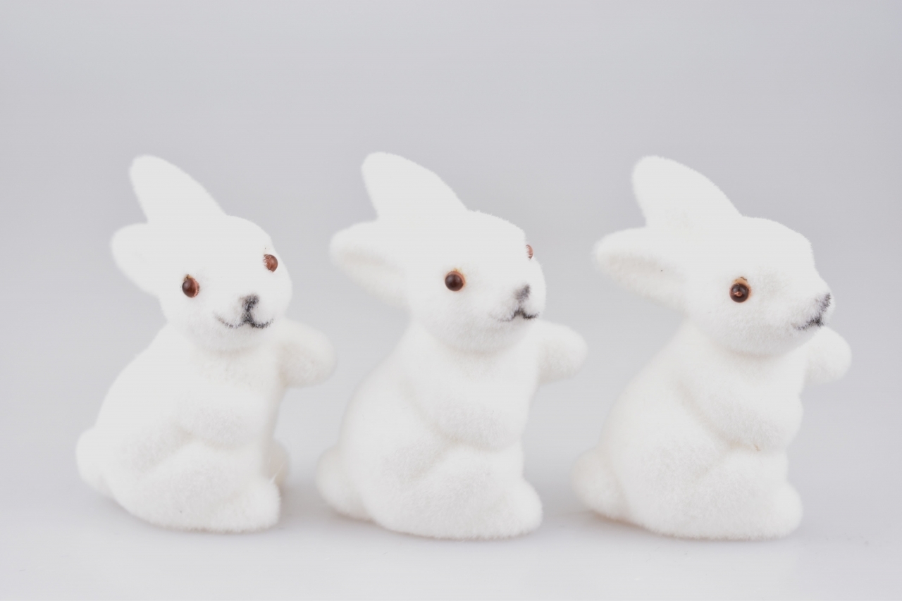 Dekorační zajíc z jemné umělé trávy vhodný k dalšímu dekorování. Sada obsahuje 3 zajíčky.