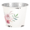 Navržený s jemným motivem růží, tento bílý kovový obal s kruhovým tvarem přinese nádech elegance a svěžesti do jakéhokoliv interiéru nebo venkovního prostoru. Jeho rozměry jsou perfektní pro menší rostliny či sukulenty, které nejen skvěle vyniknou, ale i snadno zapadnou do různých prostorů - od okenních parapetů až po poličky či stolky.