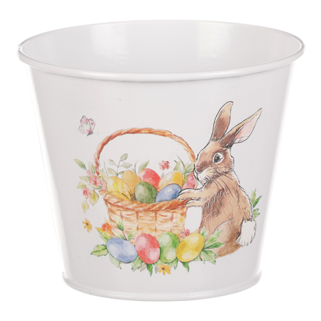 Kovový obal na květiny s velikonočním designem bude dokonalým doplňkem vaší sváteční výzdoby. S vyobrazeným zajíčkem a barevnými vajíčky v košíku na bílém podkladu, dodá prostoru tu pravou velikonoční atmosféru. Společně s jarními květinami v nich zasazenými, bude vytvářet neodolatelný celek, který přinese svěžest, barevnost a optimismus. Květiny budou v obalu chráněné a vypadat fantasticky.